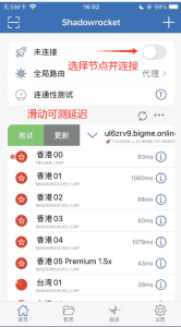 2.连接前请测试延迟,显示绿色为可用,红色为暂时掉线